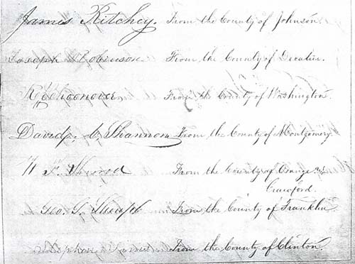 | Hiram Prather | From the District of Jennings and Bartholomew |