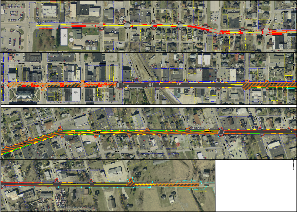 The $5.3 million project is improving two miles of State Road 38 through New Castle. Pavement east of 15th Street was completely rebuilt. Pavement west of 15th Street was rehabilitated. Work included replacing sections of curb and sidewalks, modernizing curb ramps at intersections, and improving storm water drainage structures within the project limits.