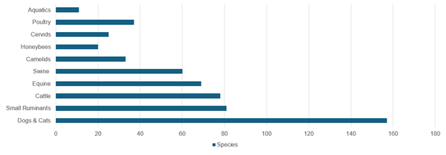 Practitioners were asked to select all that apply. Some have specialty practices that service only one species, such as equine or poultry.
