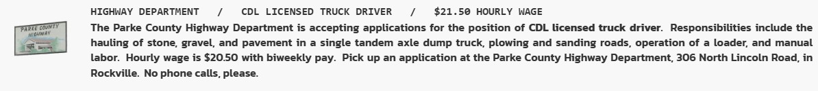 Click on link for more information: FULL TIME HIGHWAY ADMINISTRATOR - NEW FEBRUARY 19 2026