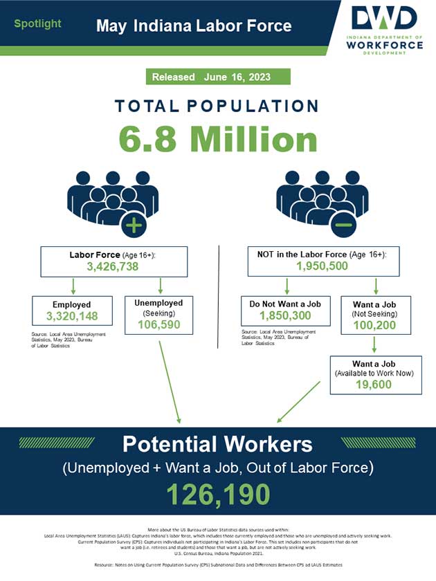 May employment data for Indiana counties, cities and MSAs will be available Monday, May 19, 2023, at 12 p.m. ET pending U.S. Bureau of Labor Statistics validation.