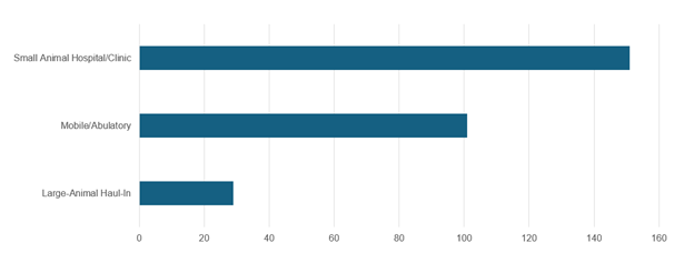 The total number reflects respondents—many may operate in more than one category. In some cases multiple veterinarian respondents may have reported on the same facility in a multi-doctor practice.
