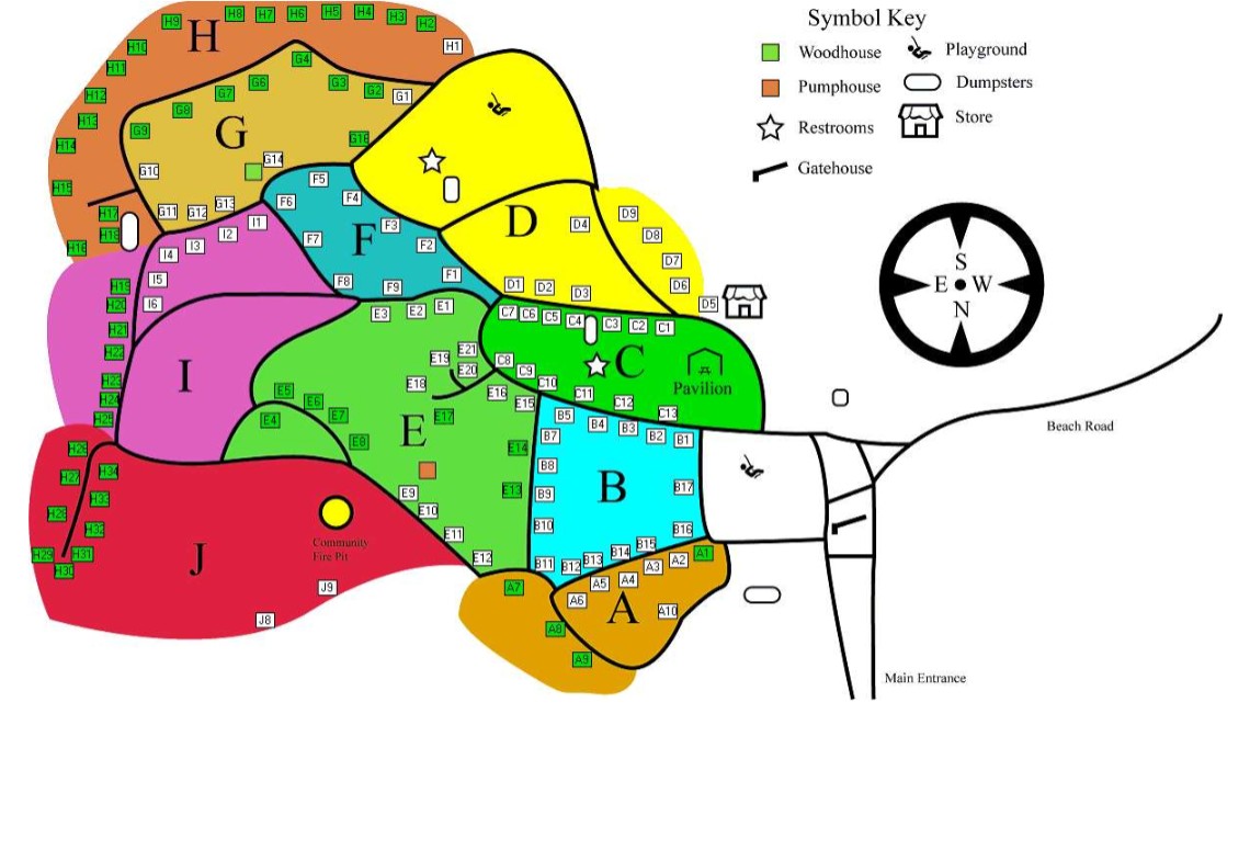 Here is a Map of our Modern Electric Sites. Sites marked in green are Long Term/Seasonal campsites only. Currently, we are completely booked up on Seasonal/Long Term campsites. We apologize for any inconvenience.