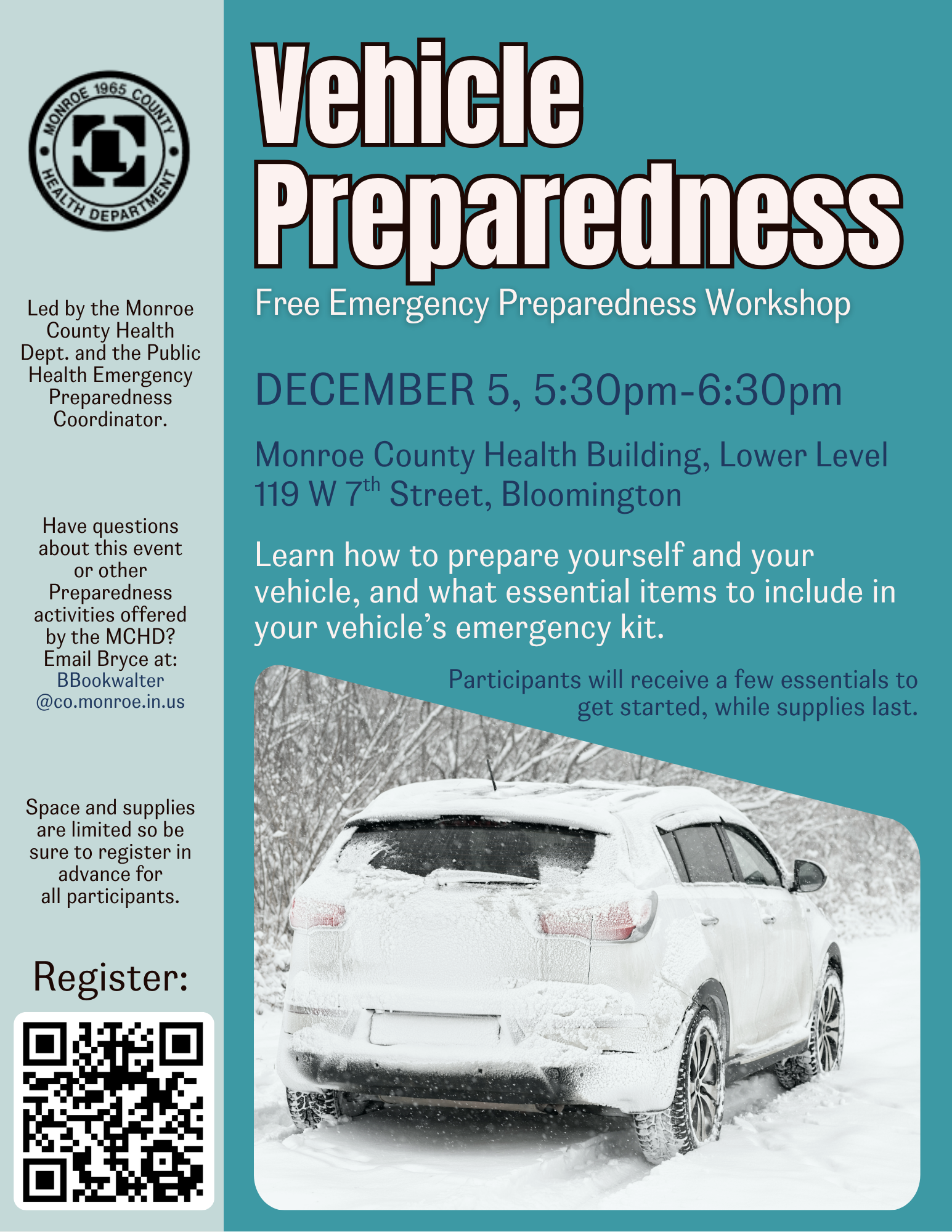 For more information about Preparedness University workshops, or if you would like to request Emergency Preparedness Education for your school, workplace, or community group, please call the Public Health Preparedness Coordinator at (812) 349-2849.