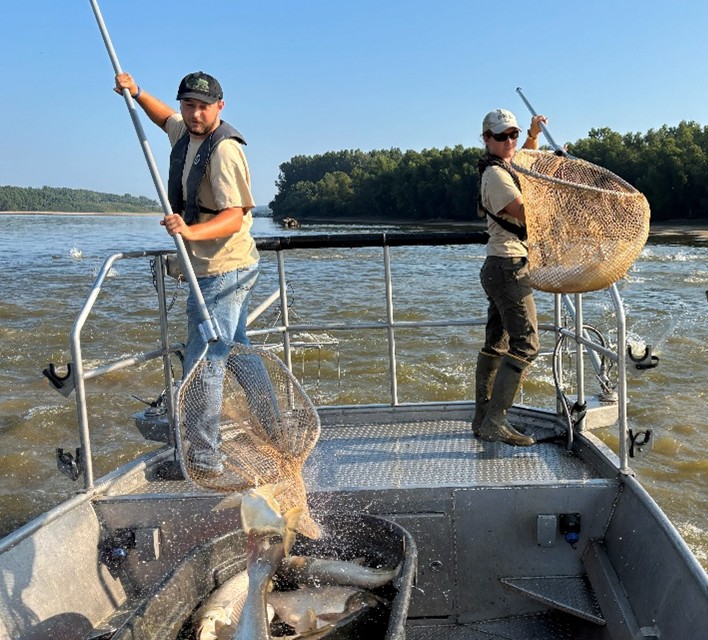 In 2021, Indiana DNR established a dedicated invasive carp work unit of three biologists. This work unit, in addition to other Indiana DNR staff, actively participates in the Ohio River Basin Invasive Carp Control Strategy Framework, which outlines a plan for preventing and reducing the invasive carp population while gaining a better understanding of social, ecological, and economic effects of invasive carp. Indiana DNR works with other state, federal, and university partners on a variety of invasive carp research and management projects.