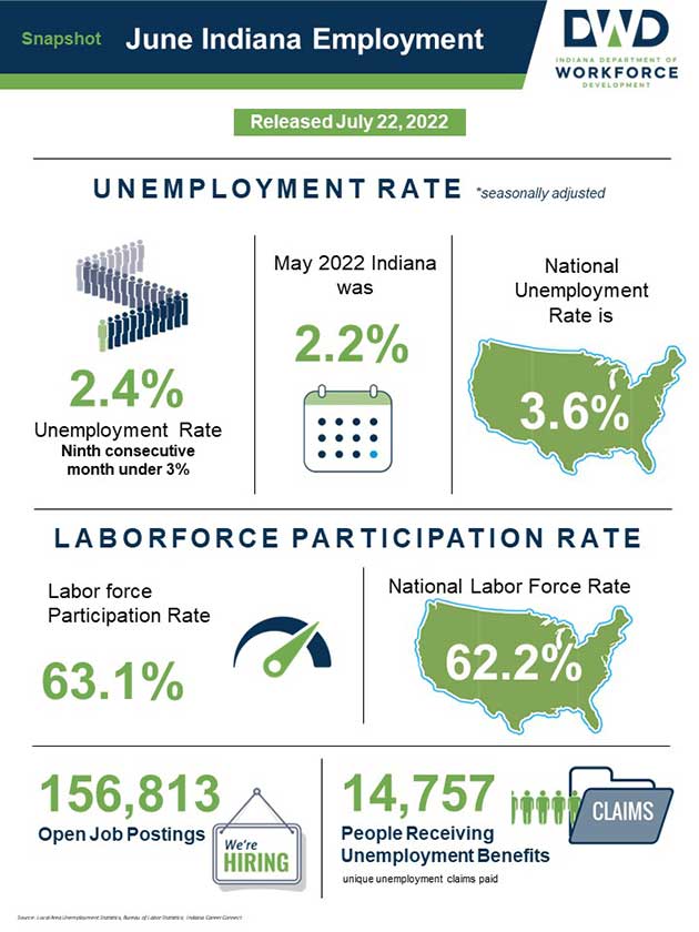 Below is the most recent monthly Indiana employment report followed by reports from previous years. Review the graphics to find the data needed or access the links to get more details.