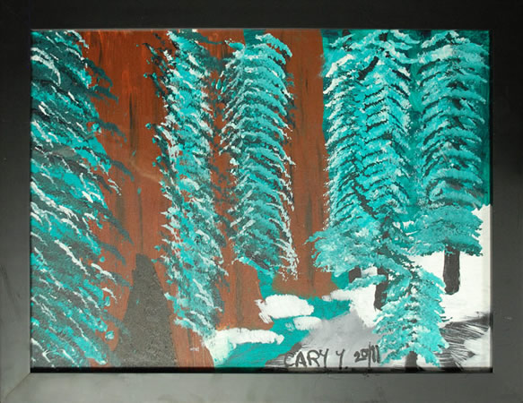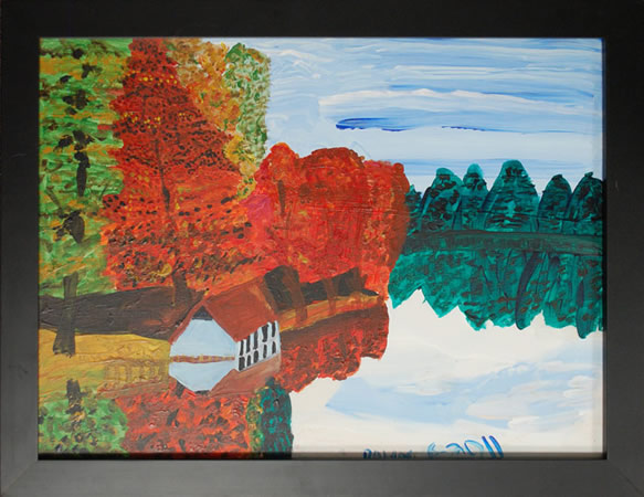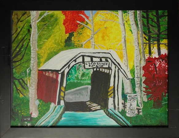Art by patients from the Evansville State Hospital on display at the Indiana Government Center.