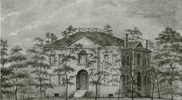 Illustration of the second Indiana Governor's Residence, built on the Circle in 1827.