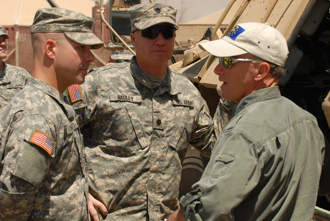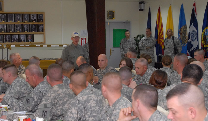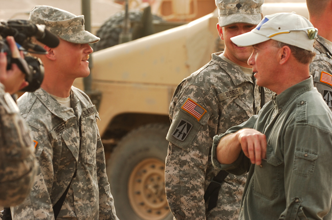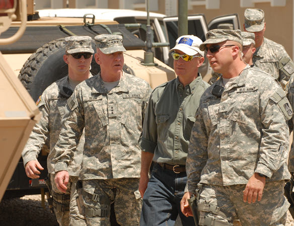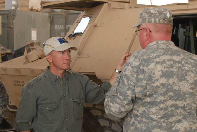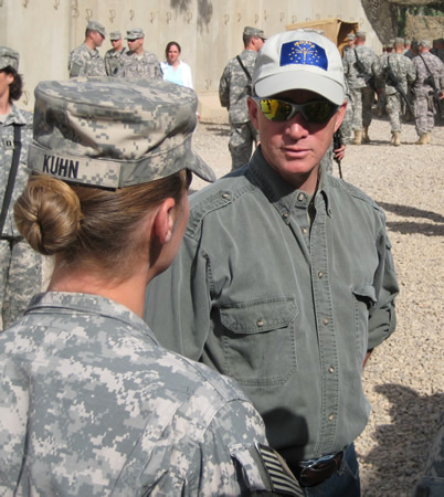 On May 19, Governor Mitch Daniels traveled to the Middle East to visit Indiana soldiers deployed in Iraq and thank them for their service. The governor attended briefings with officials and Hoosier troops from across the state. Indiana currently has the largest deployment of National Guard members in the Middle East, including 4,133 Indiana National Guard members serving in support of Operation Iraqi Freedom and Operation Enduring Freedom. Indiana soldiers are participating in a variety of missions including convoy logistic patrols, force protections, and the Iraq-based Industrial Zone initiative. This was the second trip the governor has taken to visit Hoosier troops deployed in the Middle East.