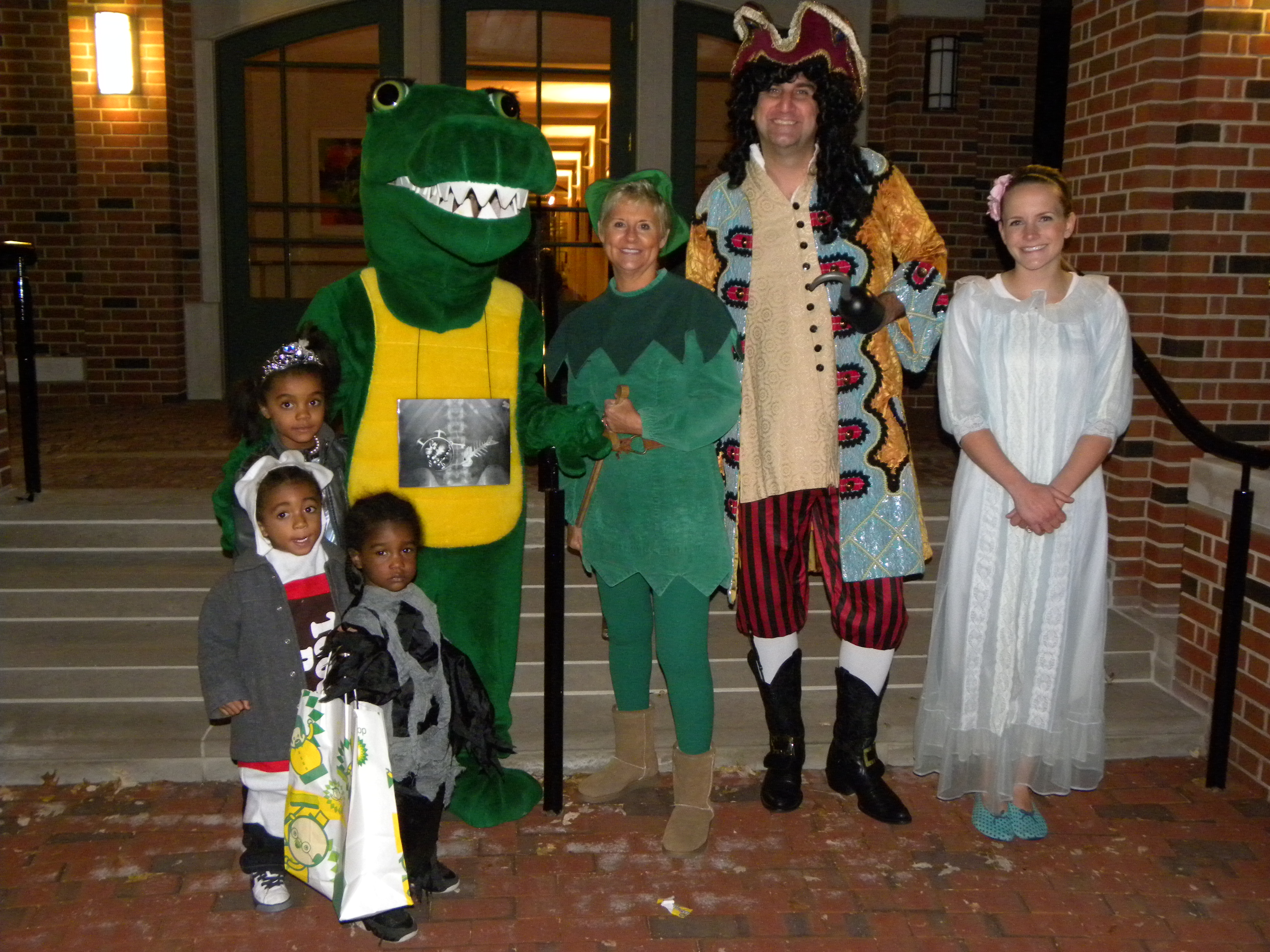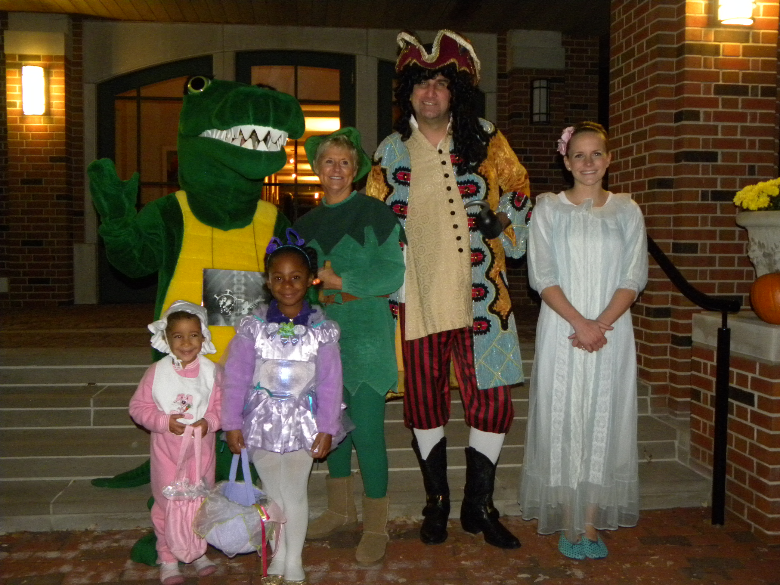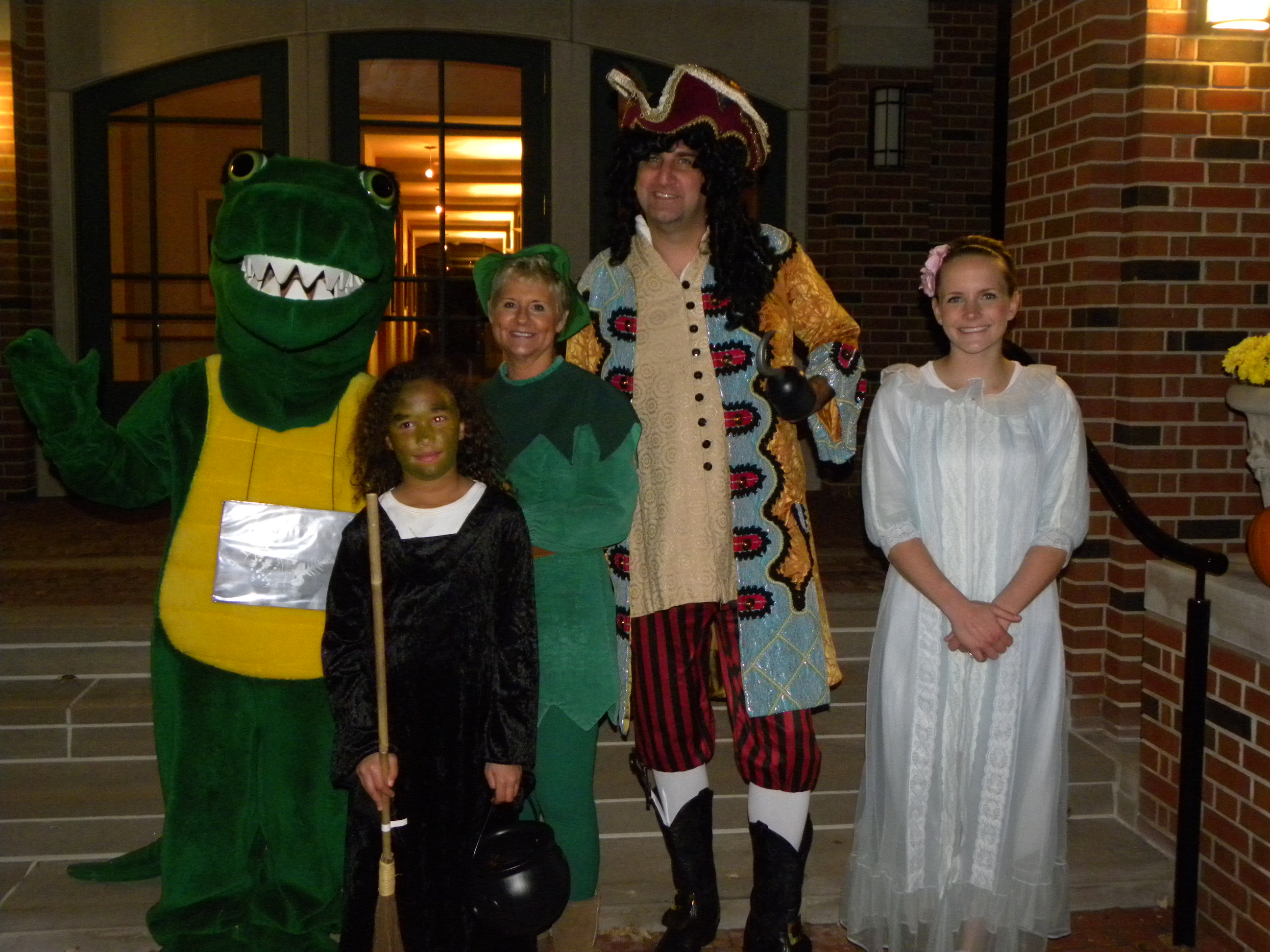In 2010, Governor Daniels continued the tradition of hosting trick-or-treaters at the Governor’s Residence on Halloween night. Candies made by several Indiana companies were distributed. The governor and his supporting cast dressed as characters from Peter Pan in costumes provided by Landes Costumes by Rachel of Indianapolis. The governor filled the role of the Crocodile. Previous costume themes have been The Wizard of Oz, Pirates of the Caribbean, the Indianapolis 500, the 1950’s and Alice in Wonderland.