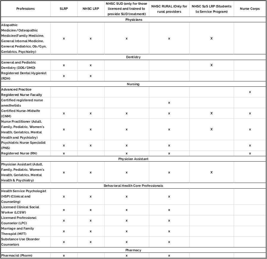 - NHSC Substance Use Disorder (SUD) Workforce Loan Repayment Program