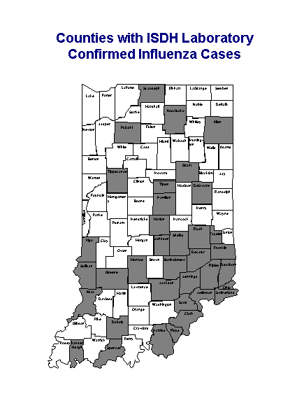 Influenza-like illnesses in long-term care facilities was reported from facilities in Boone, Clinton, Dekalb, Jackson, Marshall, and Wabash counties.