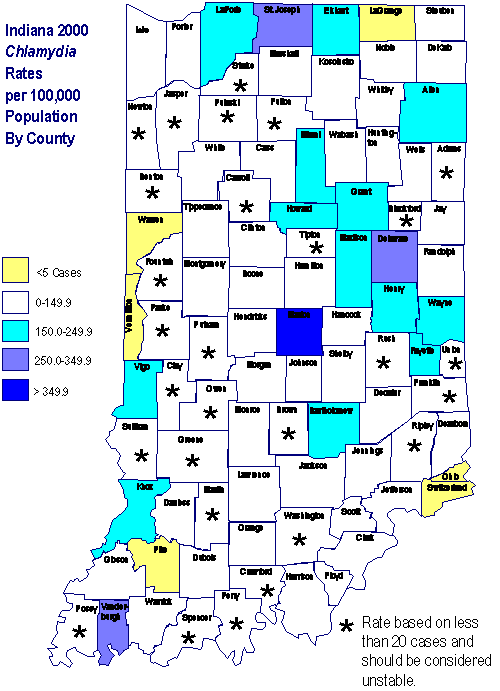 Figure Chl3: Chlamydia - Incidence Rates by county, Indiana, 2000 |