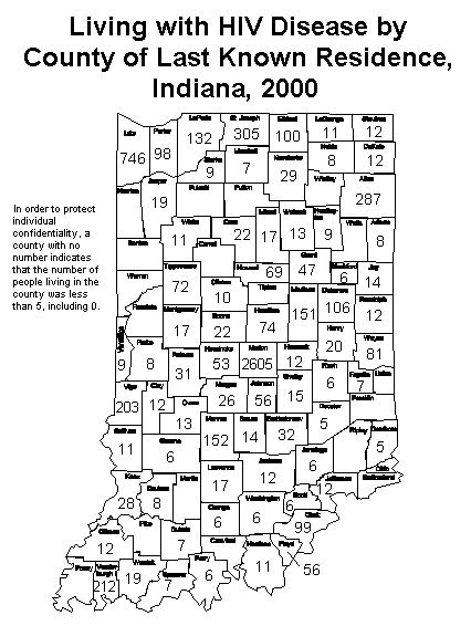 Figure HIV2: Persons Living with HIV Disease, Last Known County of Residence, Indiana, 2000 |