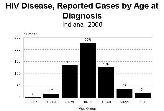 The number of reported cases of HIV and AIDS in 2000 increased for the first time since 1998. Figure HIV1 includes HIV disease case reports and infants exposed by HIV-infected mothers who were Indiana residents at the time of diagnosis or exposure.