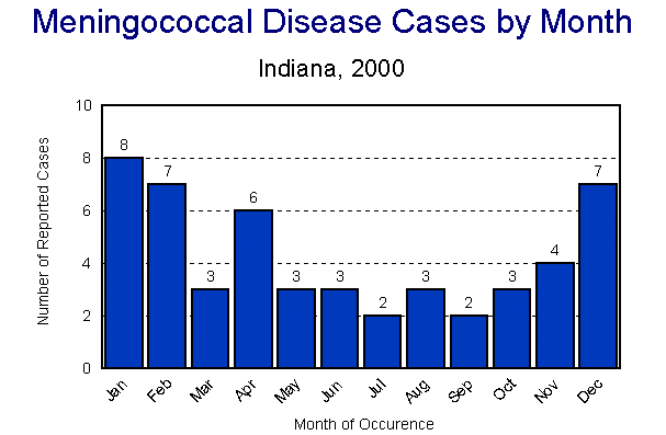 Figure Men2: Meningococcal Disease Cases by Month, Indiana, 2000 |