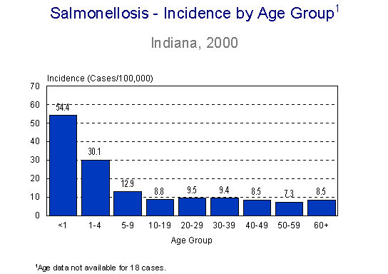Figure Sal3: Salmonellosis - Incidence Rate by Age Group, Indiana, 2000 |