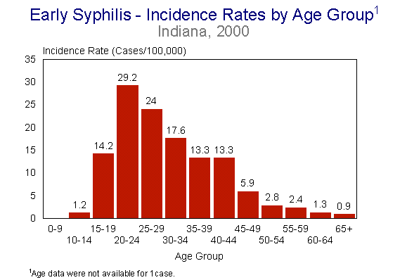 Figure Syp2: Syphilis - Incidence Rate by Age Group, Indiana, 2000 |