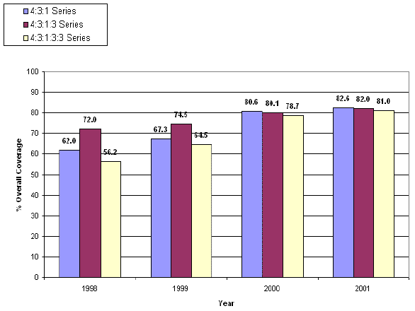 Figure 1: Overall coverage levels of 2-year olds seen by all public