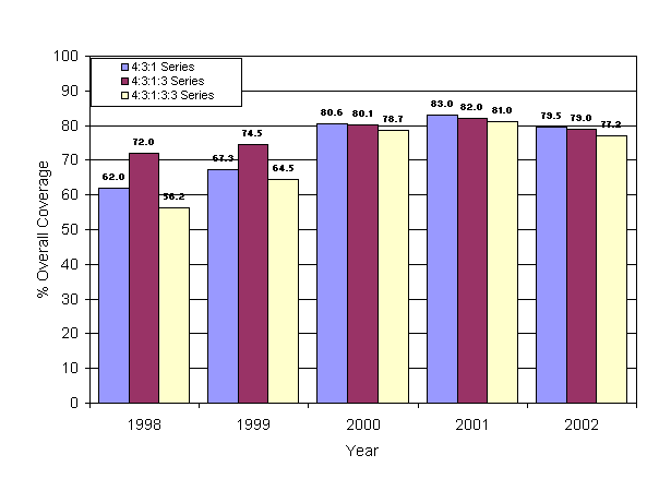 Figure 1: Overall coverage levels of 2-year olds seen by all public