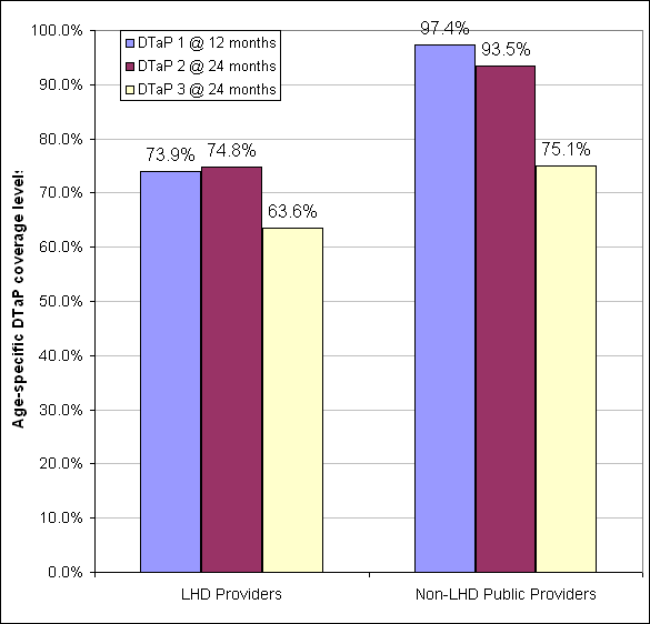 | Figure 3. Mean coverage levels of successive DTaP vaccinations by provider type in Indiana for 2003. |