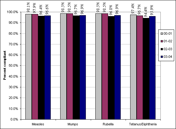 with the law and university policy ranged from 95.9% (tetanus/diphtheria)