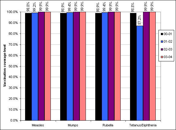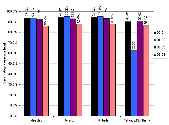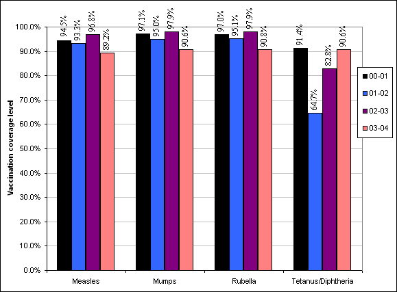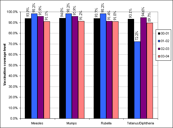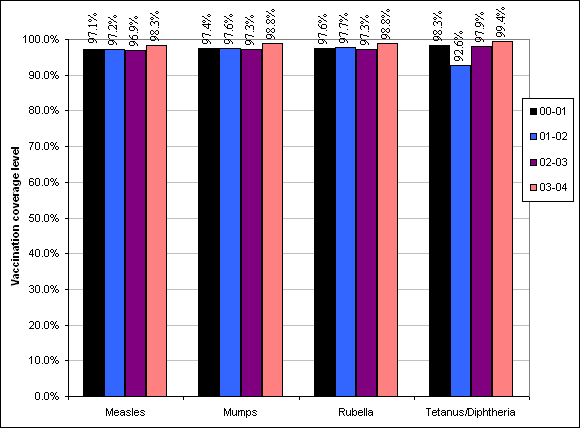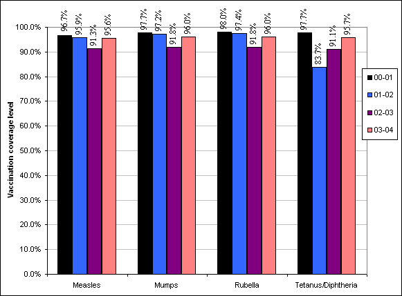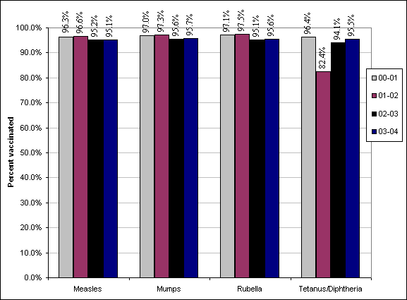 vaccinated with individual vaccines ranged from 95.1% (measles)