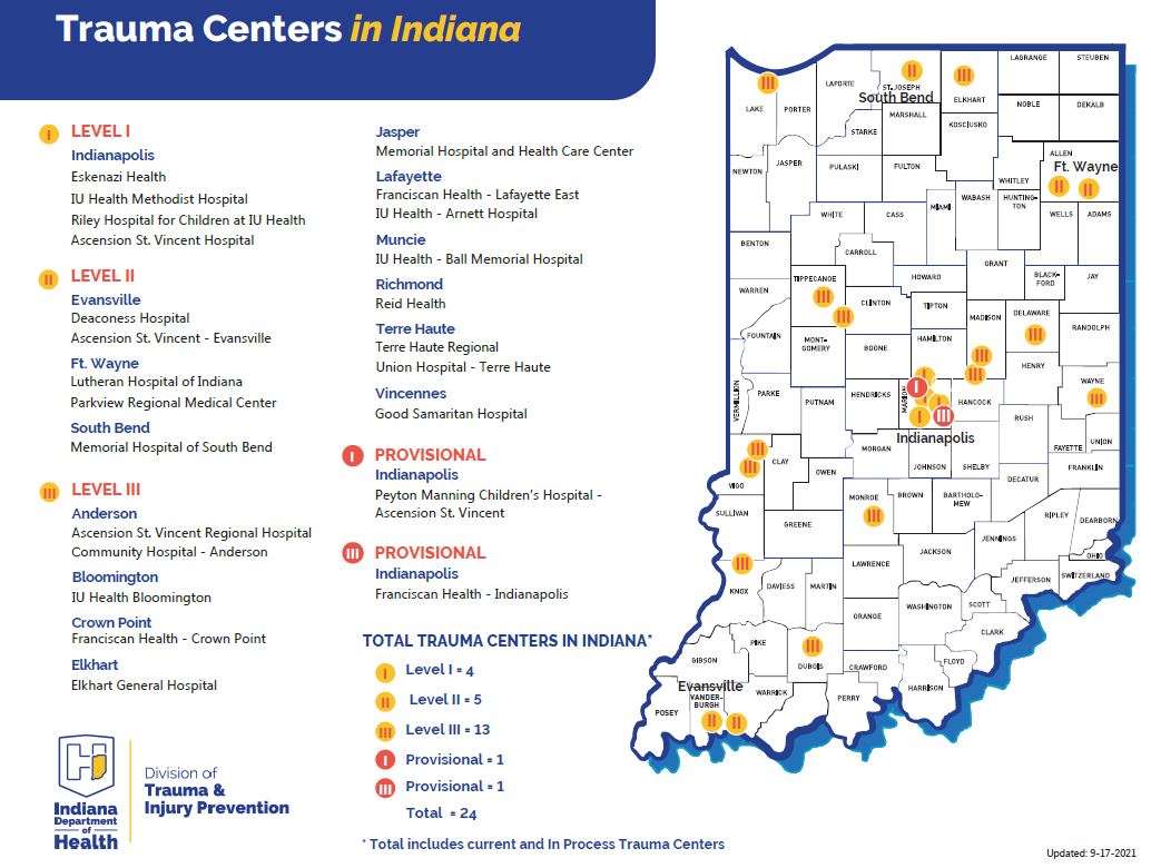 Key highlights of trauma and injury prevention for the state of Indiana are: