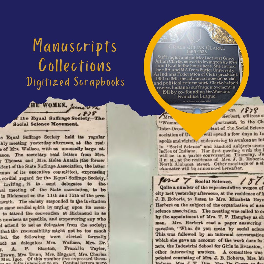 IHB researchers have used these scrapbooks and other manuscripts collections to help piece together important information about Hoosier suffragists such as Clarke. Clarke’s scrapbooks can be accessed via Indiana Memory.