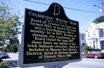 William S. Culbertson, wealthy merchant, opened home November 18, 1873 to provide food, clothing, and shelter for town's destitute widows. Home had gas lighting, upstairs water closet, and up-to-date kitchen. Residents' lives were structured according to strict rules. Culbertson's will provided support for the home after his death in 1892.