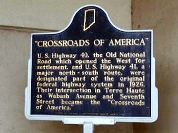 U.S. Highway 40, the old National Road which opened the west for settlement, and U.S. Highway 41, a major north-south route, were designated part of the original federal highway system in 1926. Their intersection in Terre Haute at Wabash Avenue and Seventh Street became the "Crossroads of America."