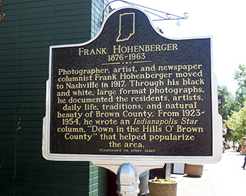 Photographer, artist, and newspaper columnist Frank Hohenberger moved to Nashville in 1917. Through his black and white, large format photographs, he documented the residents, artists, daily life, traditions, and natural beauty of Brown County. From 1923-1954, he wrote an Indianapolis Star column, “Down in the Hills O’ Brown County” that helped popularize the area.