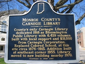 According to the minutes of the Bloomington City School Board, January 23, 1913, the Building Committee of the Public Library Board "presented a request to purchase the Colored School lot for the purpose of erecting a Public Library Building there. The Board made no definite decision in the matter and it is pending further consideration." On April 3 and 9, 1915, the School Board minutes record the public auction of the property to the Library Board for $12, 000 and the preparation of the deed (Minutes are at the Monroe County Historical Museum.). See "The Colored School" marker file.