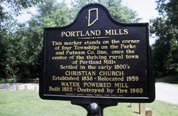 This marker stands on the corner of four Townships on the Parke and Putnam Co. line, once the center of the thriving rural town of Portland Mills.