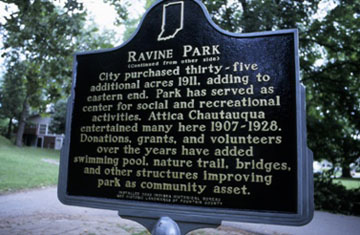 Location: Ravine Park Boulevard at E. Jackson Street entrance to Ravine Park, Attica (Fountain County, Indiana)
