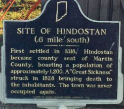First settled in 1818, Hindostan became county seat of Martin County, boasting a population of approximately 1, 200. A "Great Sickness" struck in 1828 bringing death to the inhabitants. The town was never occupied again.
