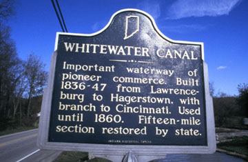 Important waterway of pioneer commerce. Built 1836-47 from Lawrenceburg to Hagerstown, with branch to Cincinnati. Used until 1860. Fifteen-mile section restored by state.