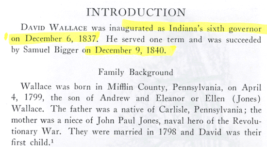 Dorothy Riker, ed., Messages and Papers of David Wallace (Indianapolis, 1963), 18, 19, 3.