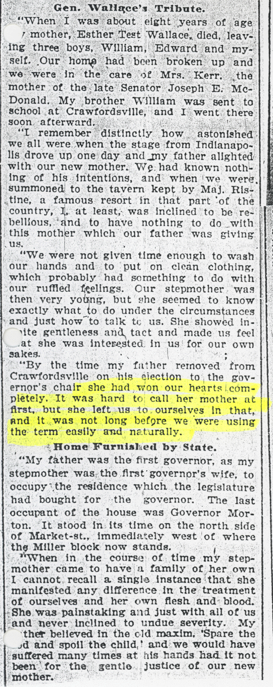 Her stepson, Lew Wallace, wrote a tribute upon her death,