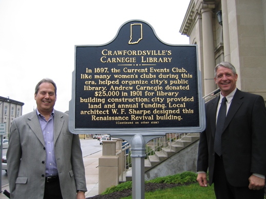 State Senator Phil Boots and Mayor Charles E. Coons attended the dedication ceremony for this marker. Senator Boots presented a proclamation from Governor Mitch Daniels during the ceremony to mark the occasion. Approximately 25 people attended the event.