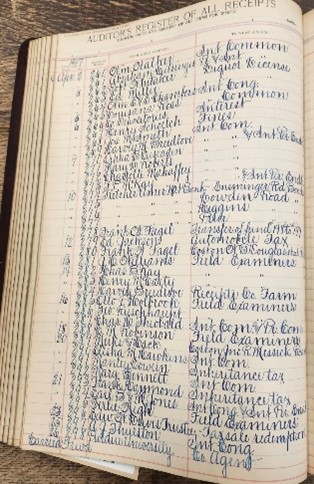 9.) One barcoding team discovered this amazing handwriting in a Shelby Co. Auditor Register of Receipts volume.