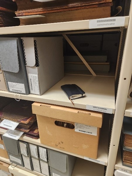 10.) Reference Archivist Keenan has been known to accidentally leave his notebook in the stacks when he’s hunting down answers for reference questions. While we didn’t barcode his notebook, it was still fun to find in the stacks!