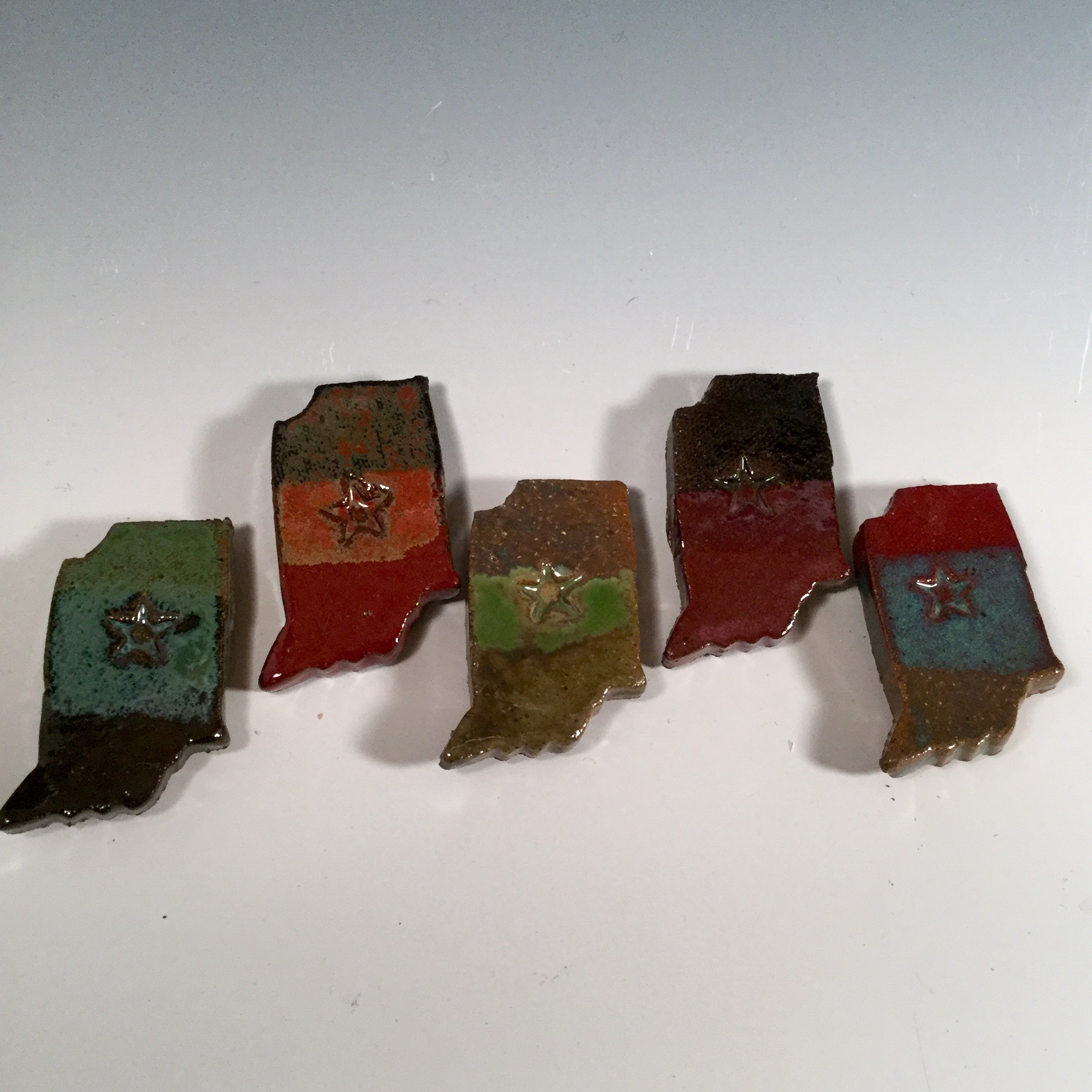Handmade stoneware pottery refrigerator magnet. Measures approximately 1.25" x 2".