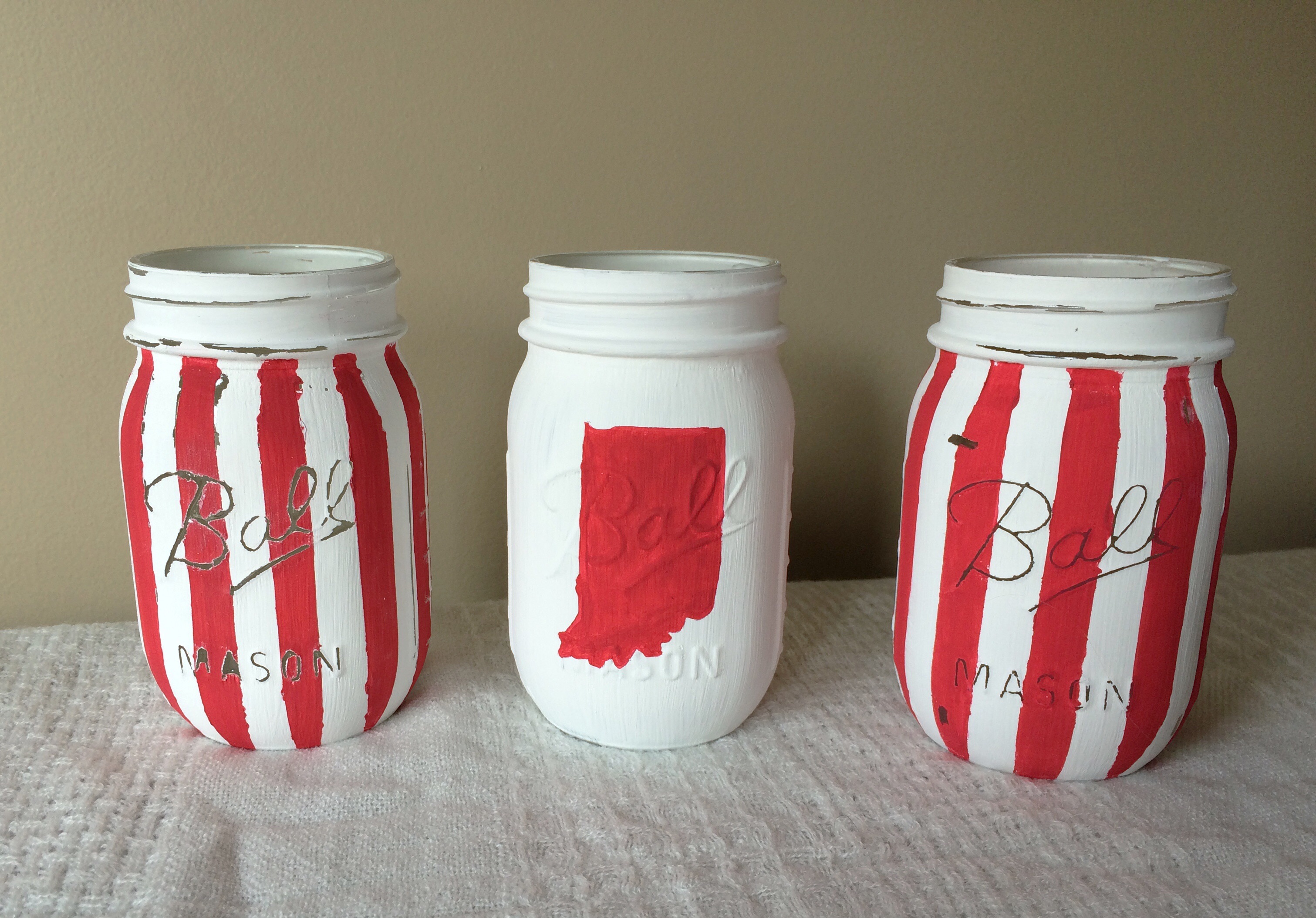 This hand painted satin Ball mason jar set featuring the Hoosier state is the perfect way to commemorate Indiana's Bicentennial in your home. This pint size jar set would add a perfect touch of Hoosier pride displayed on a shelf, on a table as a centerpiece, as a vase, or as a great gift for an Indiana fan.