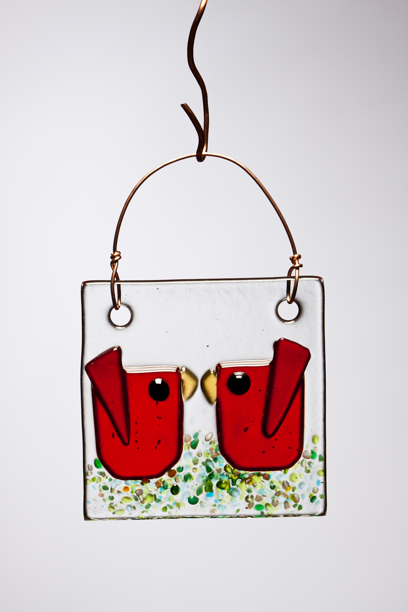 This little red birdie is fused with fun and ready to hang from the attached copper wire! When you invite this bird into your life, my hope is that you will smile each time you see it. :)
