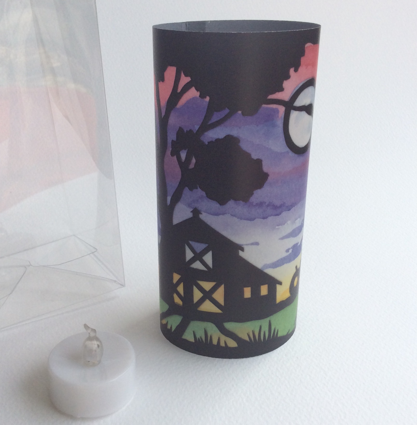 "Indiana Farmstead" Full-color Cut Paper Lantern by Elizabeth Seagull Heeter.