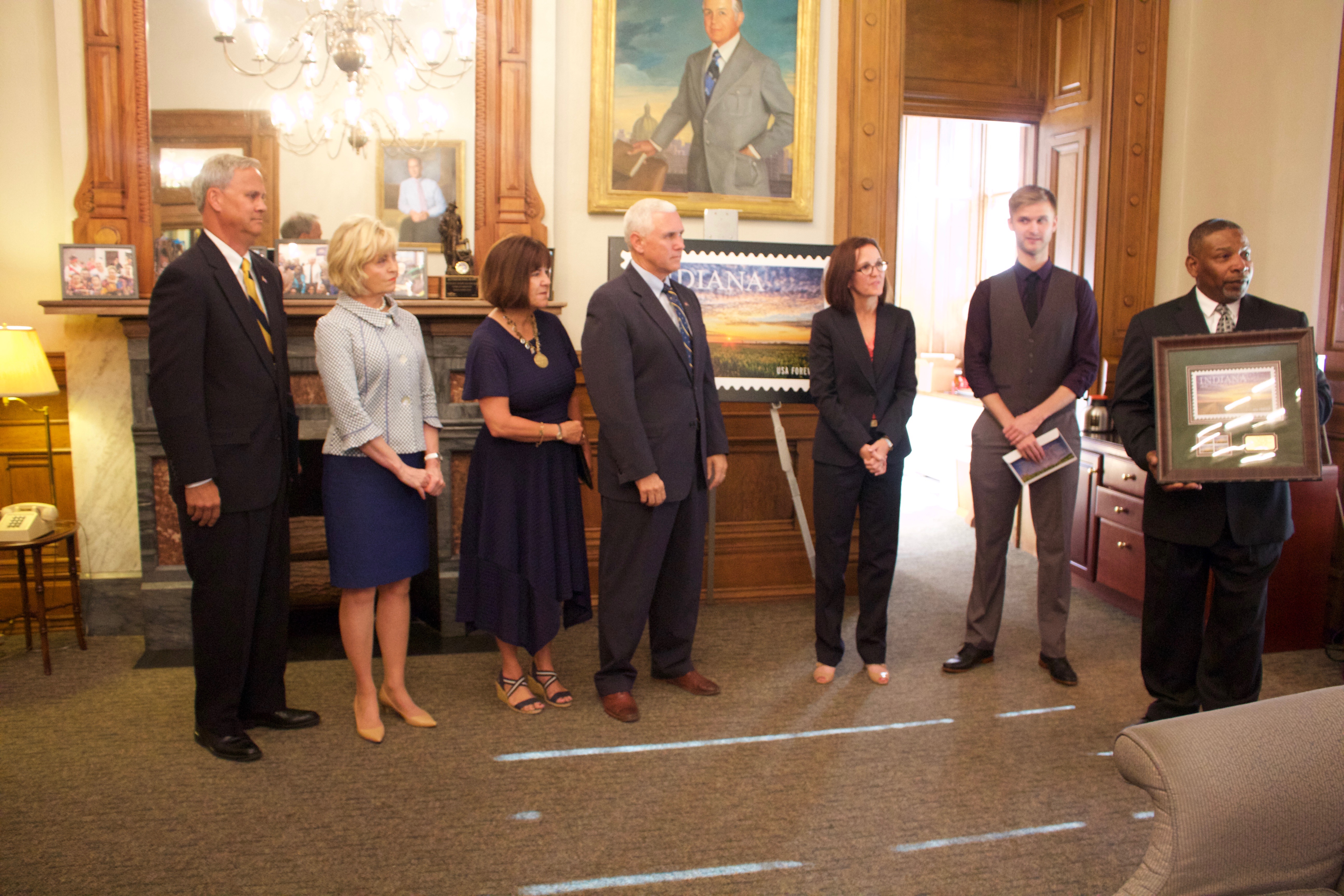 On June 29, 2016 Lt. Governor Eric Holcomb, Indiana Office of Tourism Development Executive Director Mark Newman, Indiana Farmers Mutual President and CEO Kim Smith and Bicentennial Torch Relay State Director Noelle Szydlyk unviled the names of more than 2,000 Indiana Bicentennial Torch Relay torchbearers as well as the official torchbearer uniforms at the Indiana Statehouse.