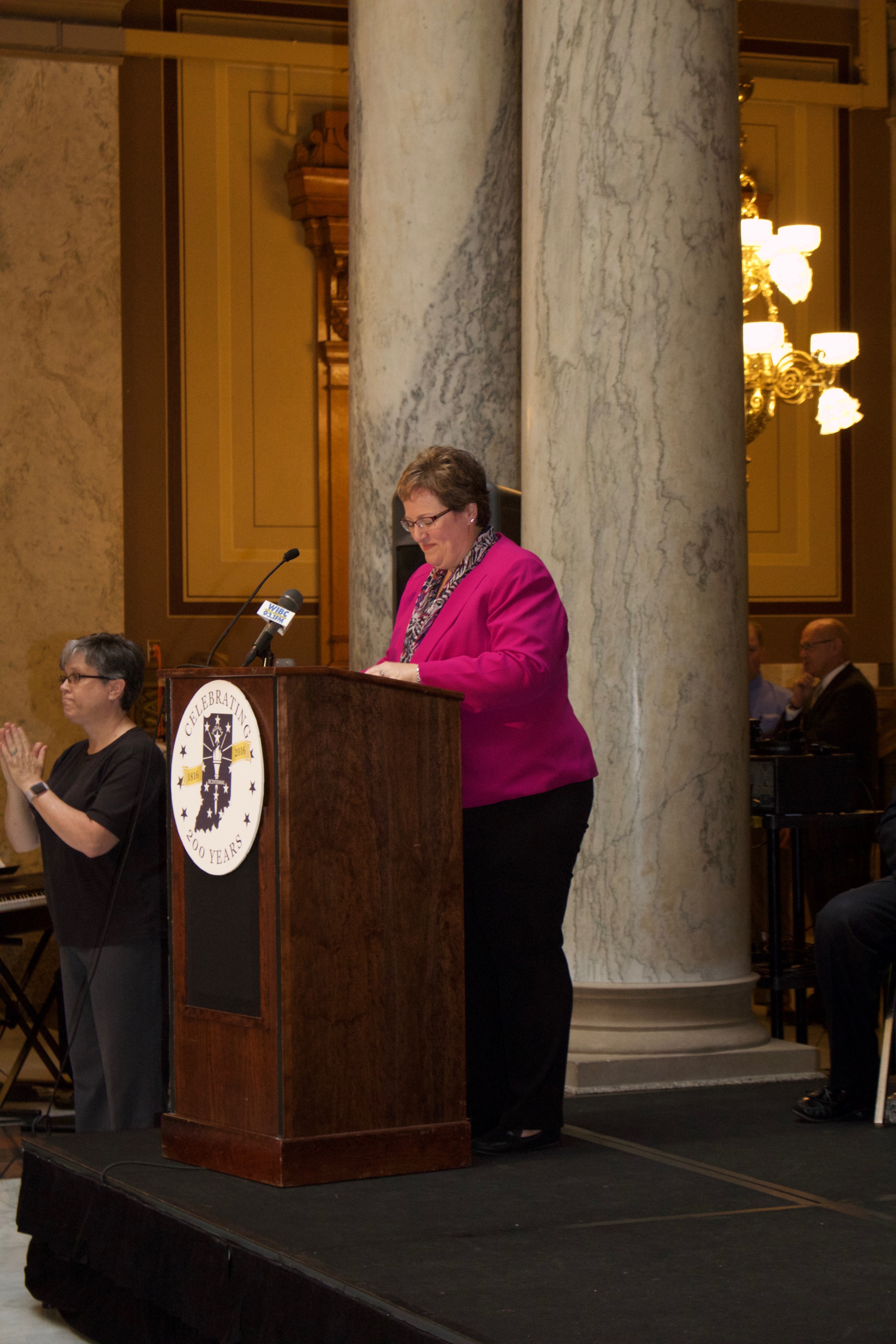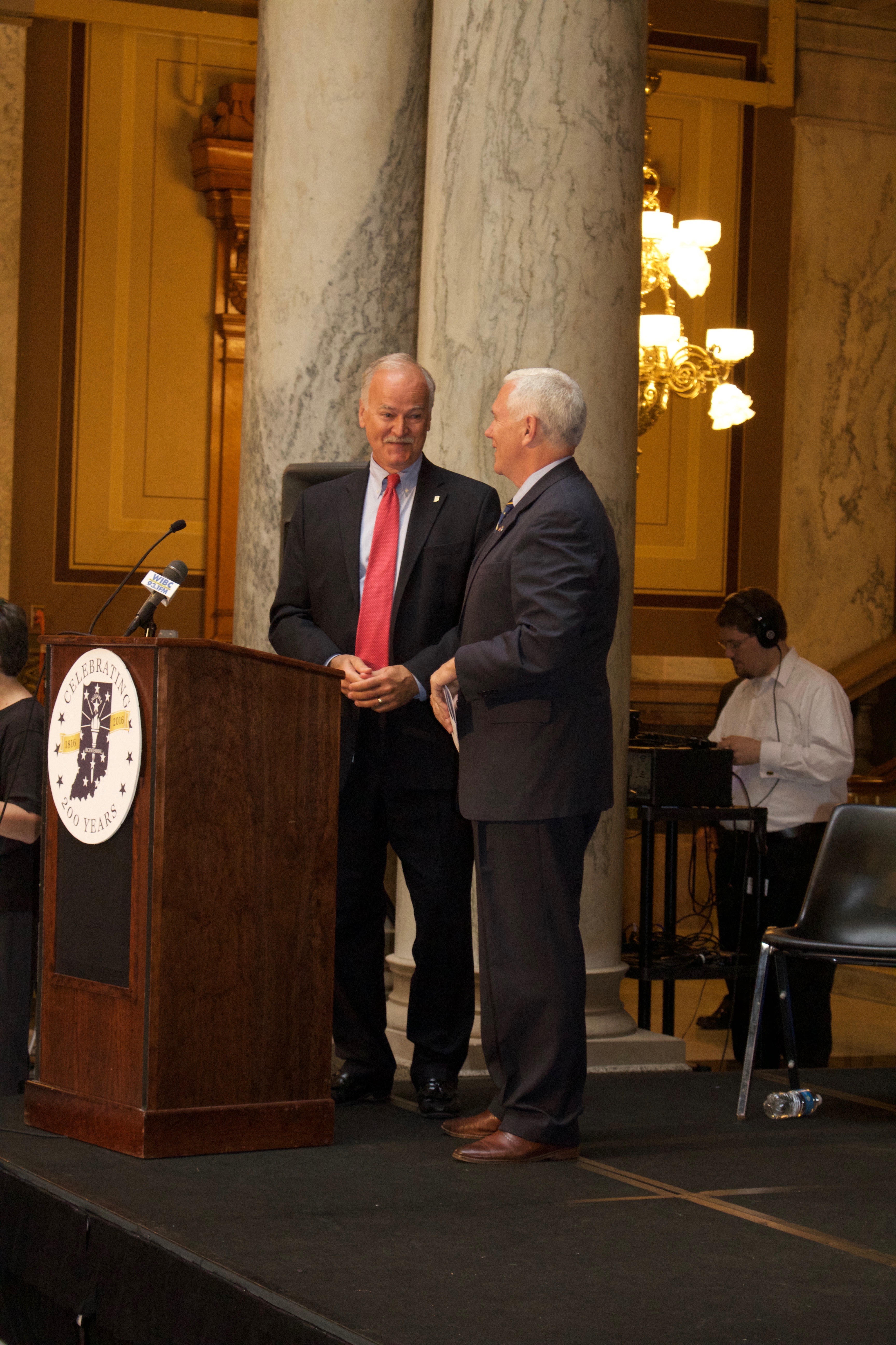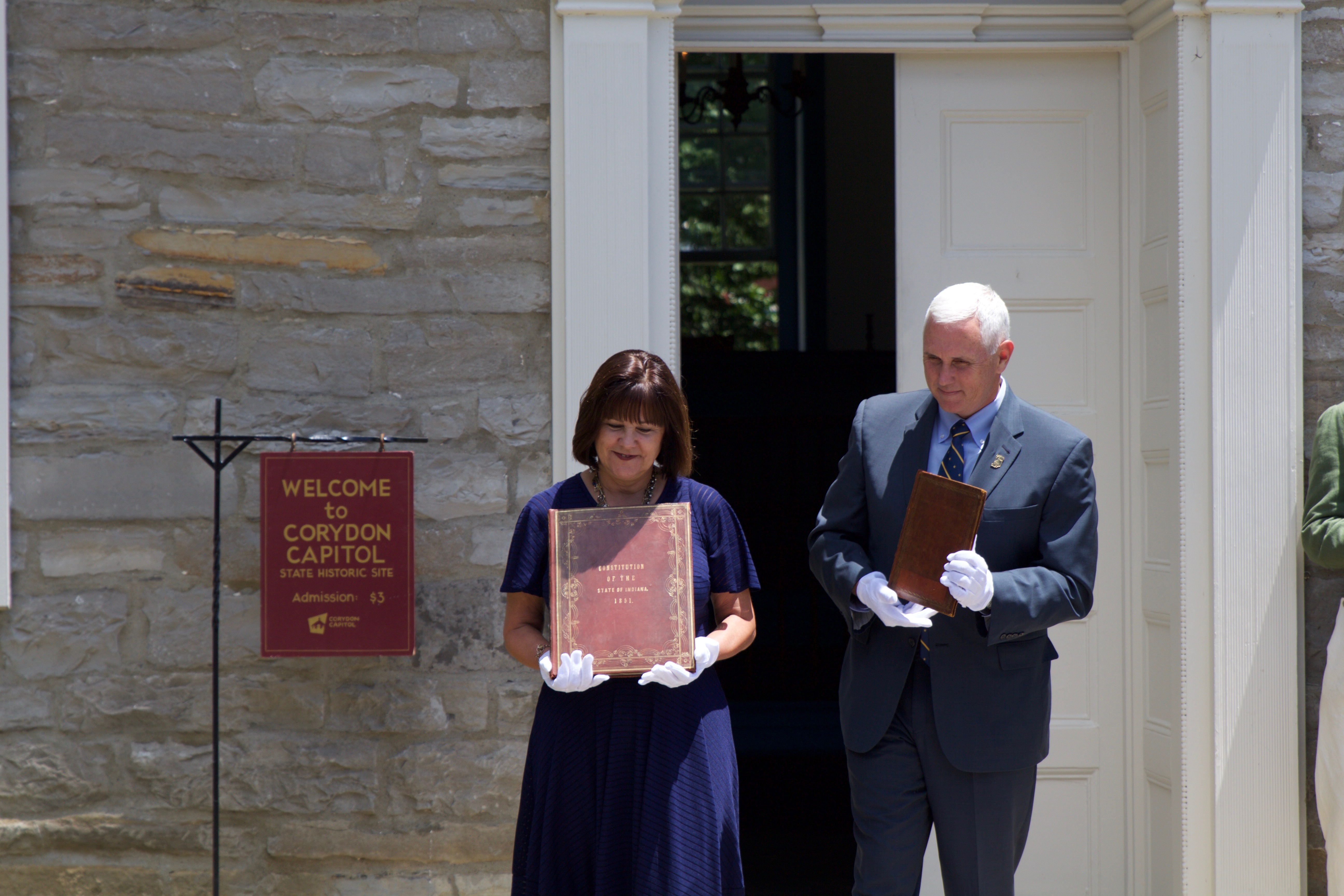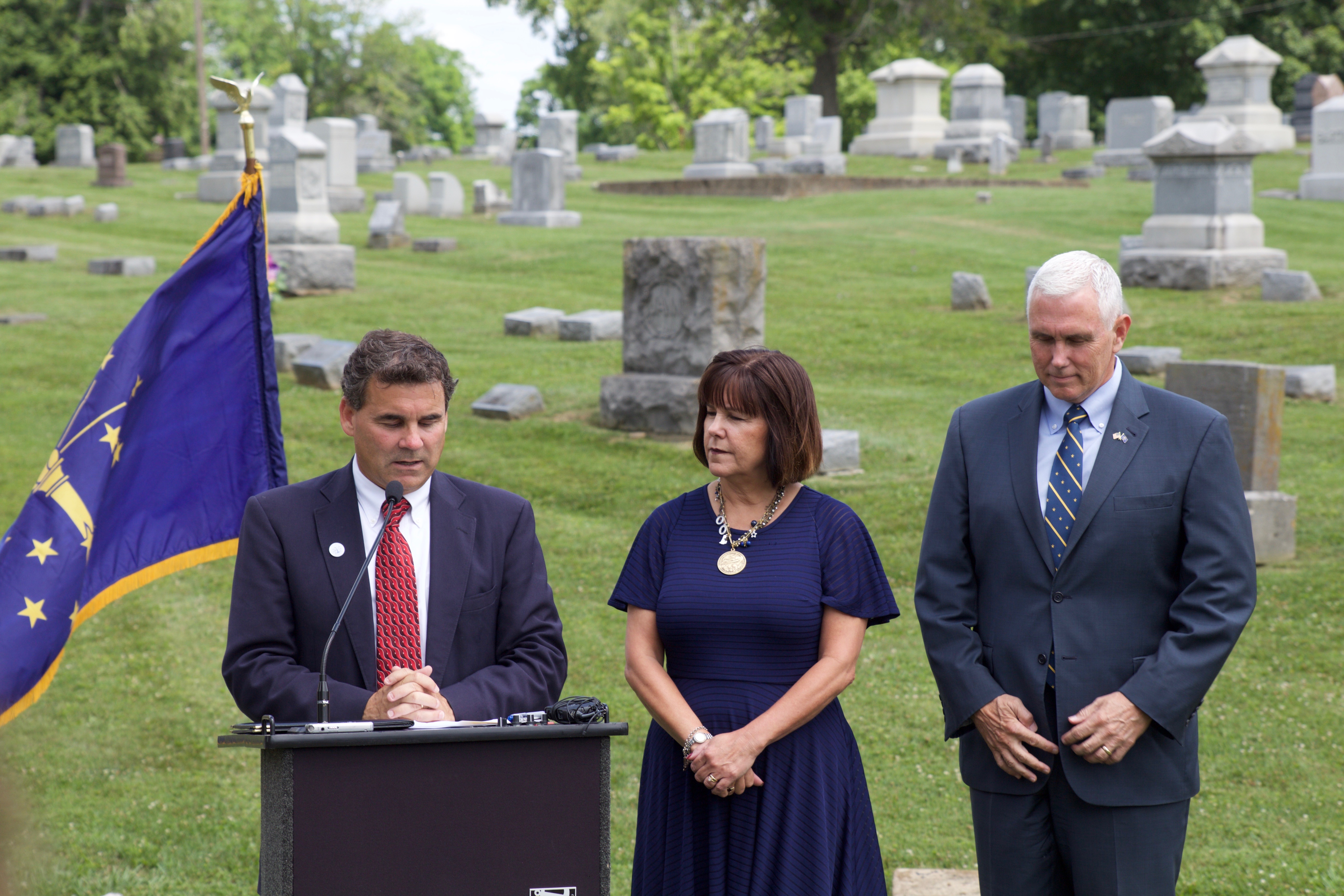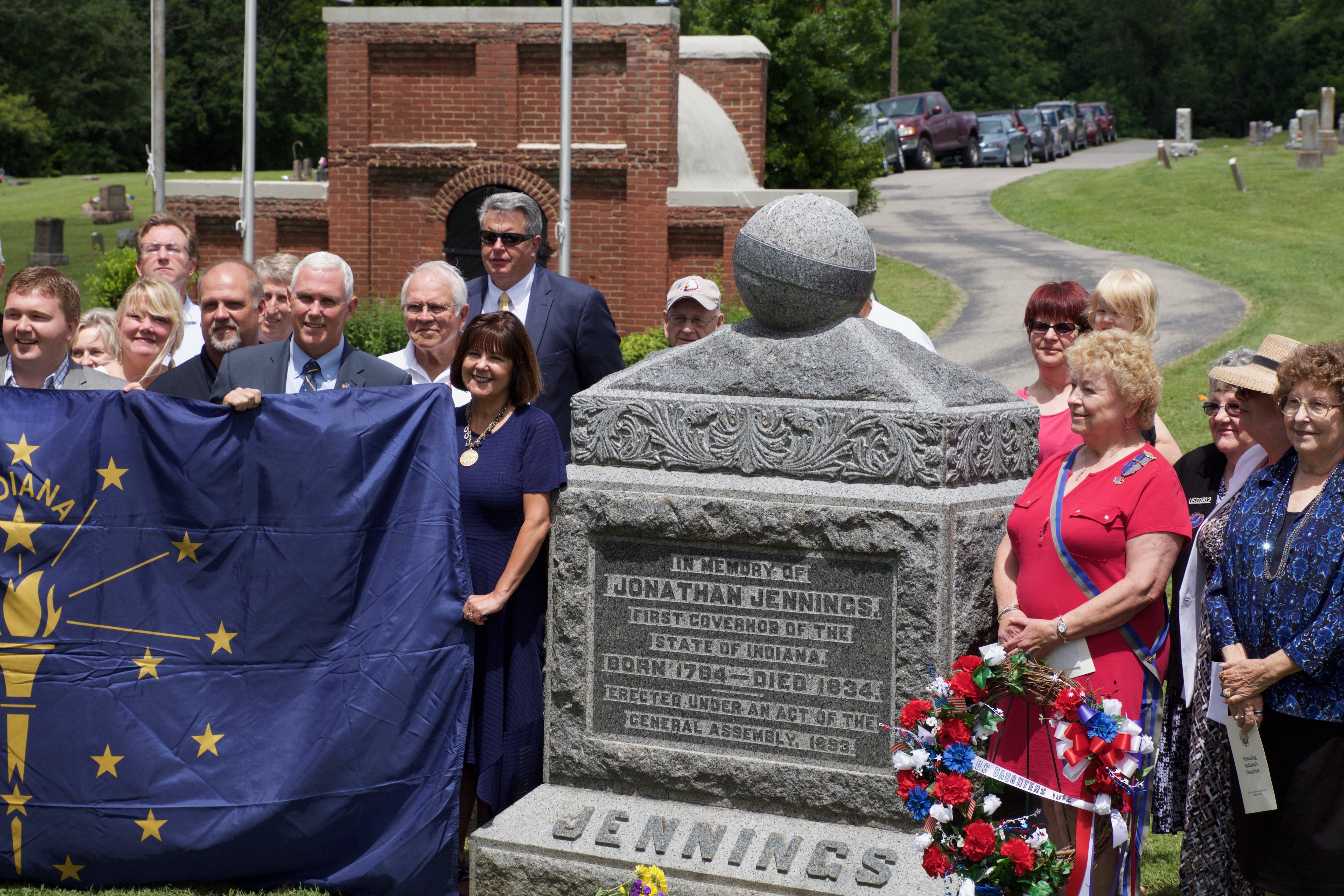 Governor Mike Pence and First Lady Karen Pence joined the Indiana Archives and Records Administration on June 29, 2016 in Clark County to commemorate one of Indiana's founders, Jonathan Jennings. This event marked the final ceremony in a series of graveside memorials honoring constitutional delegates buried in Indiana. These IARA events honoring the state's founders are an officially endorsed Bicentennial Legacy Project.
