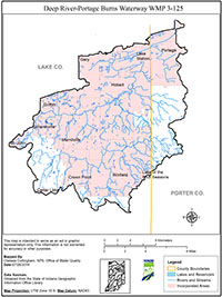 The Deep River/Portage Burns watershed, identified as the hydrologic unit code (HUC) watershed 0404000105, covers a drainage area of approximately 180 square miles in northwestern Indiana, of which 104 square miles are located in Lake County, and 20 square miles are located in Porter County. There are approximately 125 miles of impaired streams within the watershed boundary.