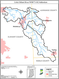 In 2003, the LaGrange SWCD began work on a Watershed Management Plan (WMP) for the headwaters region of the Little Elkhart River. This plan was completed in April 2007 for the 14-digit Hydrologic Unit Code subwatersheds; Bontrager Ditch-Emma Lake (04050001140010), Bontrager Ditch-Hostetler Ditch (04050001140020), and the Little Elkhart River Ditch-Topeka (04050001140030). Although written to stand alone, this plan is essentially an addendum of that initial effort. To fully understand the scope of the project, readers should review the original headwaters WMP which is available at the LaGrange County SWCD.
